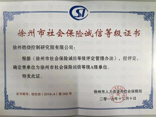 • 徐州市社会保险诚信等级证书