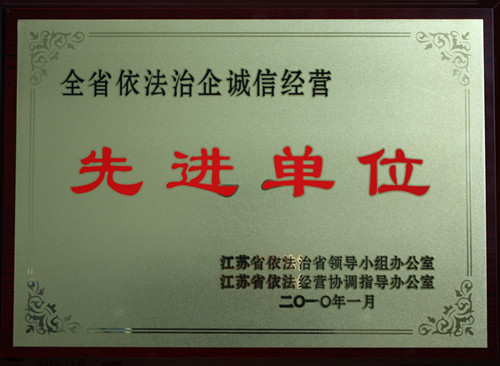 • 全省依法治企诚信经营先进单位